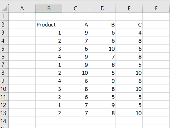 You have a sales report out of four products from one to four and out of three sales regions A, B, and C.