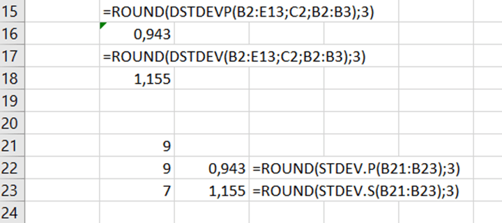DSTDEV is more complex to calculate the standard deviation from a matrix.
